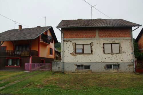 Op die route kregen we nog meer indrukwekkends te verwerken. We kruisten namelijk enkele dorpjes die onder vuur gelegen hebben in de oorlog in Joegoslavië. Het is niet goed te beschrijven wat voor gevoel dit bij ons opriep. Hoe afgrijselijk het was om huizen en gebouwen te zien die helemaal doorzeefd zijn met kogelgaten en gaten van grotere bommen. Wat een ellende voor die mensen en wat een leed. Het moet echt heel naar zijn geweest. Gelukkig hebben veel mensen de draad weer kunnen oppakken en hebben ze hun huis weer opgeknapt, maar het contrast is erg groot. Je kent de verhalen, maar zien wat anderen elkaar aandoen en waarom, dat is andere koek.