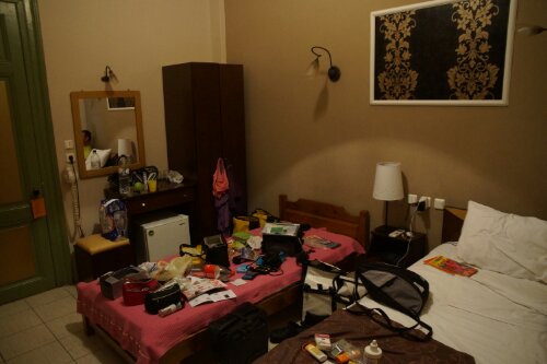 Er was geen camping in Thessaloniki, dus we pakten goed uit door een hotel te nemen. Zoals al eerder gezegd, ze kunnen ons geld goed gebruiken. Daarnaast vinden wij de airco en het ontbijt voor een keer een erg aantrekkelijk idee. Nu hadden we eindelijk eens behoorlijk internet, zodat ik mijn foto’s kon uploaden (binnenkort ook op de site). Mijn telefoon heeft 30 uur alle bandbreedte voor uploaden van het hotel gebruikt…