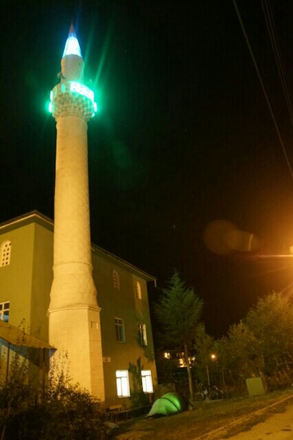 De volgende dag bereiken we vrij snel Kastamonu. Dit blijkt een leuke stad. We besluiten echter wel door te fietsen. In de volgende grote plaats is wel een hotel, maar ik verwacht verderop wel een plekje te kunnen vinden om te kamperen. We vragen het bij moskee en hier mogen we, na enige twijfel van de imam, als het donker wordt onze tent opzetten. Wanneer we eenmaal de tent hebben we staan, is de twijfel volledig weg. Er wordt ons eten aangeboden, wat vrij snel door twee buurvrouwen wordt gebracht. Een kwartiertje later komt de imam echter ook met eten. Het blijkt dat de buren ongevraagd ook eten hadden gegeven. We proberen zoveel mogelijk op te eten, maar moeten uiteindelijk toch uitleggen dat twee maaltijden echt te veel is.