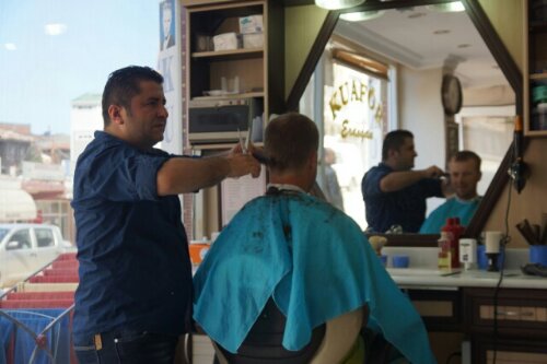 Vergeet ik bijna iets te vertellen over ons bezoek bij Erdogan. Erdogan is de plaatselijke kapper, waar ik mijn haar heb laten kortwieken en me gelijk heb laten scheren. Dit scheren vond ik eigenlijk helemaal niets, iemand anders die met een vlijmscherp mes bij je nek zit. Ik moest steeds aan de film Sweeney Todd denken. Gelukkig verlaat ik ongehavend de kapper na dik een half uur. Kosten: 13 TL (ongeveer €5).