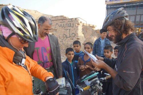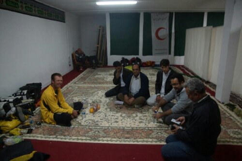 In Sarkhs ontmoetten we Ramin van de Iraanse fietsvereniging. Hij bracht ons naar de Red Crescent waar we konden overnachten. In de grote zaal was een een fietser uit Letland, met een fiets van Koga met Rohloff en riem! Hij fietst dezelfde kant op, maar heeft slechts een visum voor Turkmenistan van drie dagen.