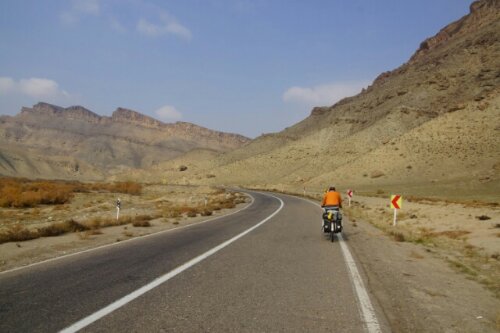 Na een heerijke, rustige maar koude nacht wildkamperen (de eerste en enige in Iran) in de woestijn bij Mozduran begon de laatste fietsdag in Iran met een stevige klim.