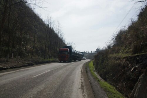 Op een bepaald moment hing er een vreemde sfeer op straat, auto’s waren gestopt en stonden aan de kant van de weg. We dachten dat er een groot ongeluk gebeurd was, maar gek genoeg mochten wij gewoon door fietsen. Bij een volgend dorpje was het hetzelfde. Maar vlak daarna snapten we wat er aan de hand was: er werden drie enorme buizen getransporteerd. Er zat steeds een man op de buis om de bedrading omhoog te houden, zodat er niets stuk zou gaan en de vrachtwagens reden zeer langzaam met grote afstand tussen elk. Wij konden er langs fietsen, net als de scootertjes, maar voor auto’s was dat niet mogelijk. Heerlijk, want nu hadden wij geruime tijd de weg voor ons alleen.