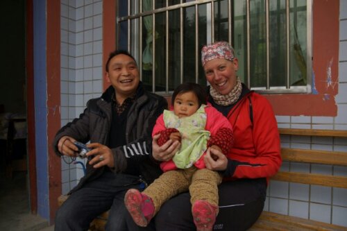 Wat hebben we het gezellig gehad bij onze host in Guiyang. Het was erg leuk om haar vrienden te ontmoeten. We vertrokken weer rond de klok van negen. We hadden een mooie fietsdag te gaan: een lekker zonnetje en een prachtige bergachtige omgeving -wat betekende dat we die dag totaal zo’n 1200 meter moesten klimmen.