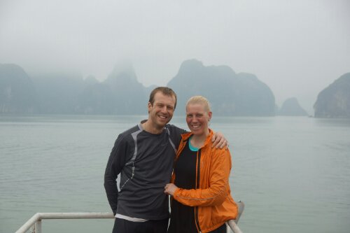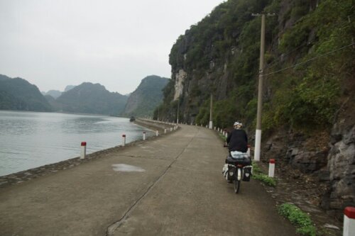 De volgende dag fietsen we naar de Ha Long baai. Het miezerige weer van China hebben we helaas ook in Vietnam, dus het mooie uitzicht van het Karstgebergte in de zee wordt ons door de mist ontnomen. We nemen een kamer met uitzicht op zee, met de hoop nog iets te kunnen zien, maar helaas… Moeten we morgen nu wel naar Catba-eiland gaan?