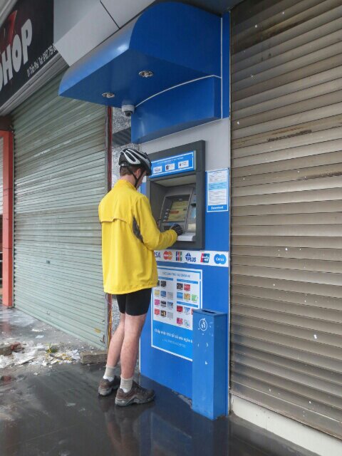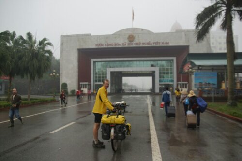 De Vietnamese douane was nog makkelijker, er stond wel een scanner, maar toen we er langs liepen werd er compleet niet gereageerd. En dan zijn we echt in Vietnam. We zeggen nog even “Good Morning Vietnam” tegen elkaar (we hebben de film vier dagen ervoor in Nanning bekeken) en stappen op de fiets. In het grensplaatsje pinnen we 2.000.000 VND, we kopen een simkaart en echt Vietnamees brood (rozijnenbrood :-)).